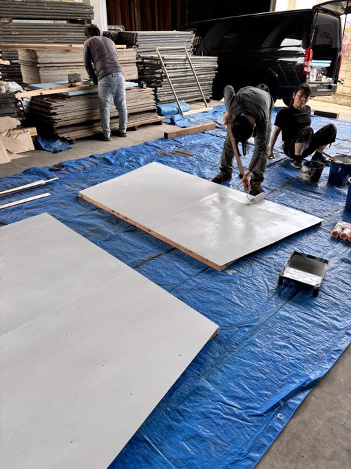 今日も朝から浮世の国のアリス、大道具作成中!みんな観にきてね!#浮世の国のアリス#坂出市民ホール#舞台美術