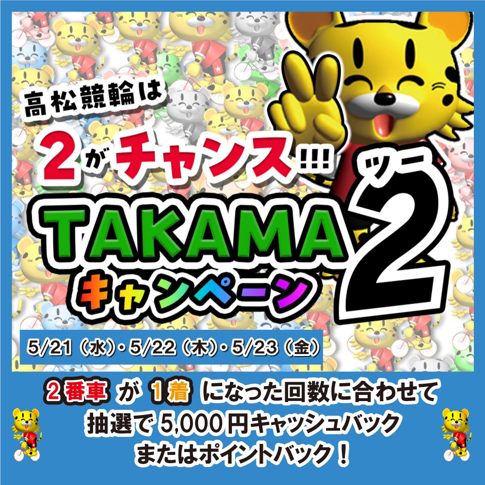 高松競輪は2がチャンス!#TAKAMA2キャンペーン5/21~23競輪公式投票CTC杯&サテライト観音寺カップ&ガールズケイリン(FI)の車券を、インターネット投票でご購入されたお客様が対象2番車の1..