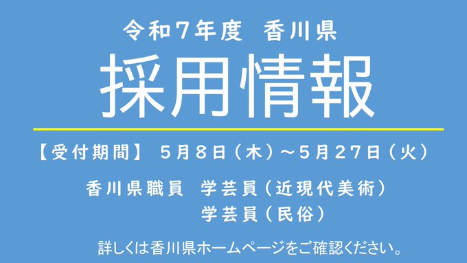 【学芸員募集中!】香川県では学芸員(#近現代美術、#民俗)をそれぞれ1名程度募集しています。受付期間は5月27日(火)まで。インターネットのみでの受付です。香川で私たちと一緒に働いてみませんか?htt..