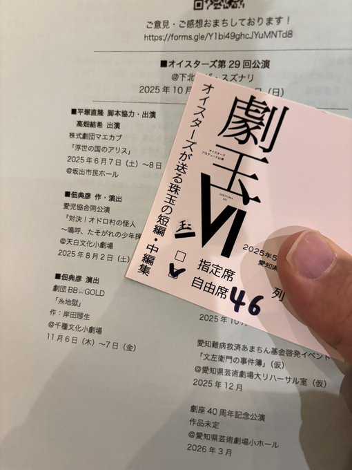 今回、浮世の国のアリスにご協力いただいてる平塚さんの舞台を観にきました! 高畑さんもご出演されてます♫ パンフの出演情報にも、浮世の国のアリスを掲載していただきありがとうございます #劇玉VI #平塚直隆 #高畑結希 #浮世の国のアリス #オイスターズ