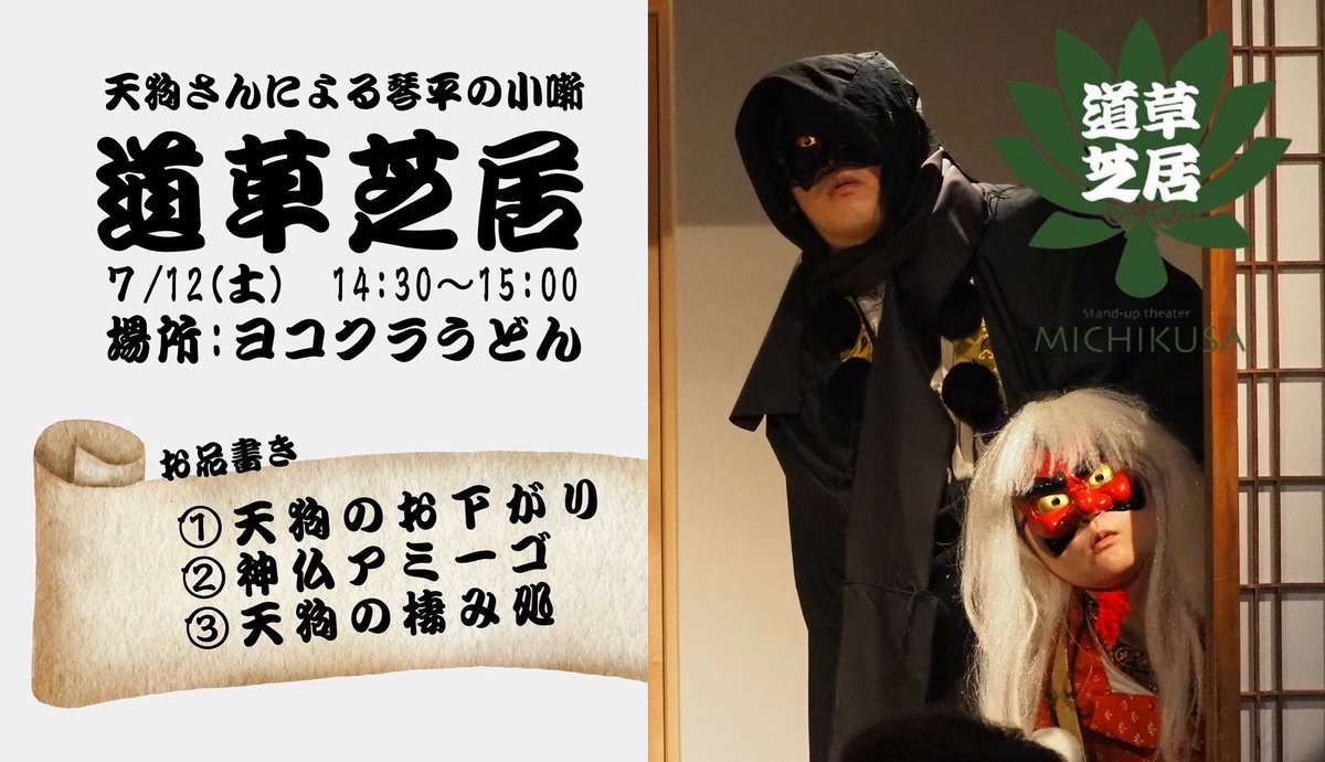 いよいよ明日14時半から道草芝居 高松市鬼無町のヨコクラうどんさんにて上演※うどんの注文は14時までです。 飛び入り歓迎です #ヨコクラうどん #道草芝居 #高松市 #演劇 #琴平
