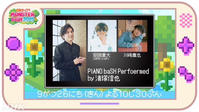 #モンバス特番出演アーティスト発表!熱狂ライブ!MONSTERbaSH2025//8組目は「PIANObaSHPerformedby#清塚信也」#川崎鷹也#安田章大(SUPEREIGHT)出演!\\放..