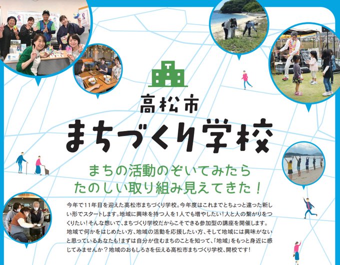 【高松市まちづくり学校講座のお知らせ】香川大学西成典久教授を講師にお迎えし、参加型の講座を行います。ぜひお申し込みください!日時:令和6年9月7日(土)13~16時場所:高松市生涯学習センター参加費:..
