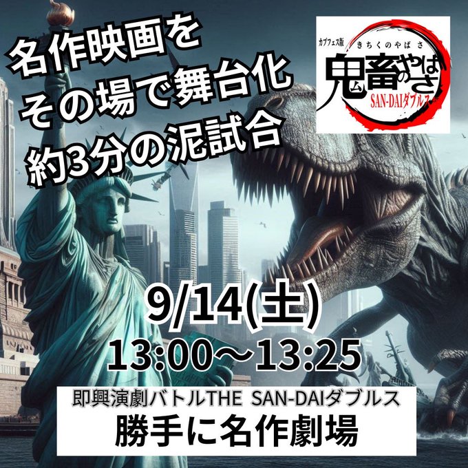 マエカブ演劇祭フェスティバル(カブフェス)9/14土9/15日は披雲閣に集合カブフェス特別企画のご紹介ですSANDAIダブルス~勝手に名作劇場~色んな劇団の役者さんにペアを組んでもらって、名作映画を勝..