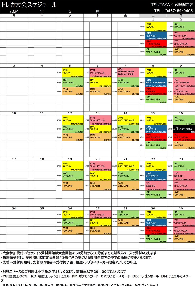 【トレカイベント情報】 6月26日(水)開催のトレカ大会 17:00〜 ポケモンジムバトル 19:00〜 バトスピショップバトル ※TCG+エントリー 20:00〜 ヴァイスシュヴァルツショップ大会 ※ブシナビエントリー TSUTAYA茅ヶ崎駅前店