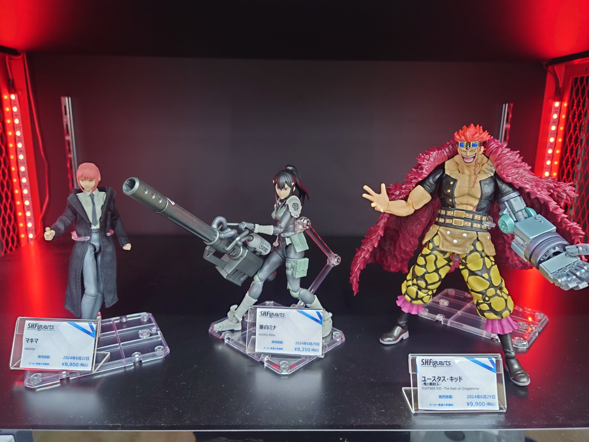 #バンダイから今週、来週発売予定のS.H.Figuartsの#サンプルが届きました。#ユースタス・キッドのボリューム感がなかなかあります。#亜白ミナの武器も大きいですよ。売場に展示してますのでよかった..