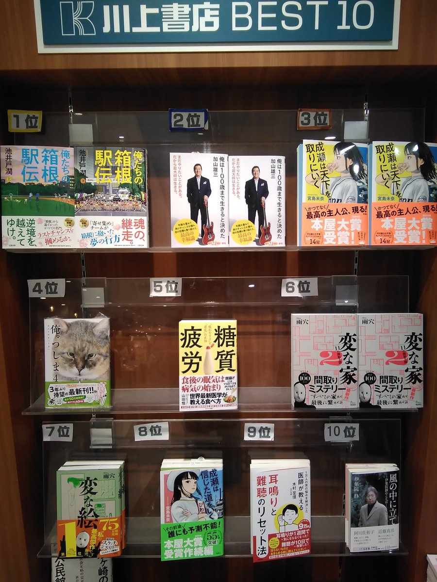 こんにちは☺️✨今週のランキングです!/╱ 今週(4/28~5/4)の当店ベスト10👑\╲1位:俺たちの箱根駅伝(#池井戸潤/#文藝春秋)2位:俺は100歳まで生きると決めた(#加山雄三/#新潮社)3..