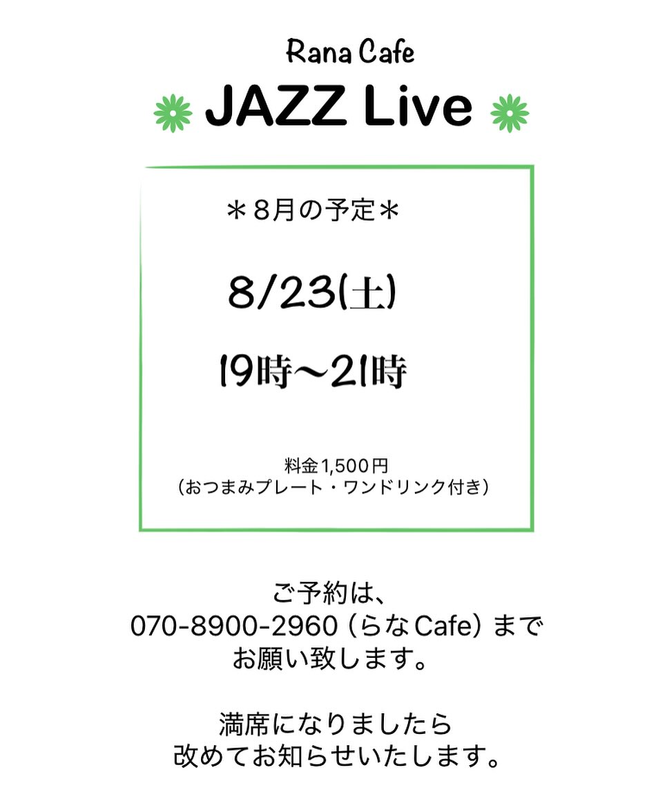 いつもありがとうございます。8/23(土)夜Cafe開催します(╹◡╹)お席のご予約お待ちしております。