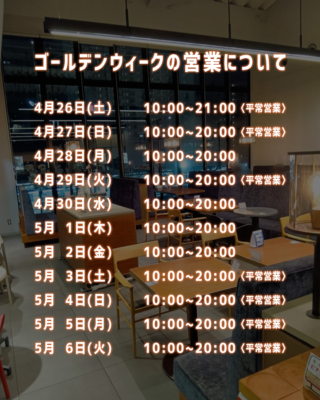 こんにちは😃ついにGWが始まりましたね😁🌞皆さま、いかがお過ごしですか?🤩今年はカレンダー通りの営業とさせていただく為、4月29日(火)、5月3日(土)〜5月6日(火)はお休みとさせていただきます🙇🏻..