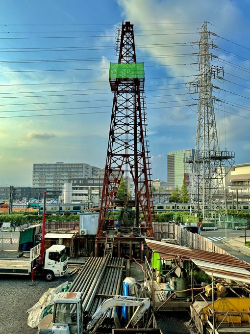 温泉掘削工事明日(8/19)から2日間は、ケーシングパイプ(550メートル)分の挿入作業を行う予定です#海老名#小田急