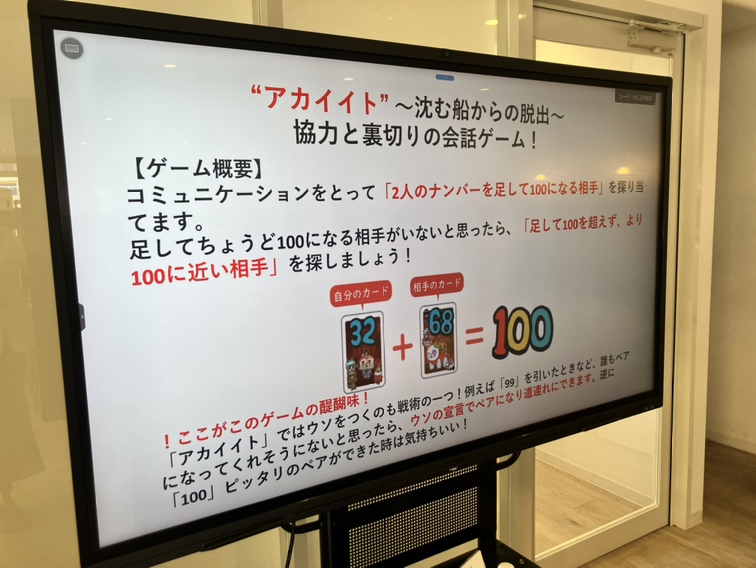 おはようございます!本日はレクリエーションプログラムで「アカイイト」というゲームを開催中です!コミュニケーションをとり、価値観のすり合わせを行う必要がある奥の深いゲームです。仕事でも考えのすり合わせは..