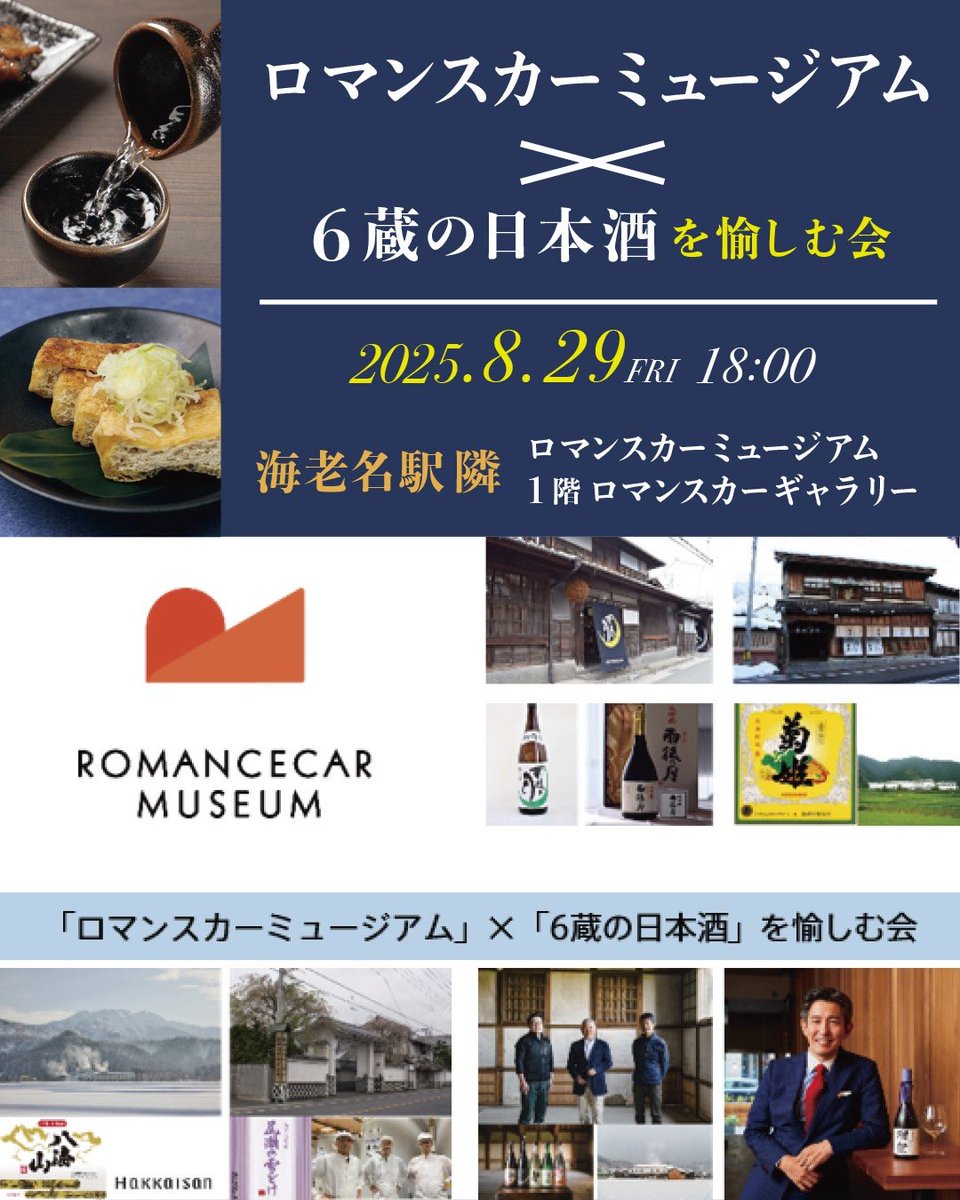 8/29(金)18:00〜20:00#ロマンスカーミュージアムで全国から集まる6蔵の日本酒を愉しめるスペシャルなイベントが開催されます詳細は↓↓↓(先着100名事前申込制)https://odakyu..