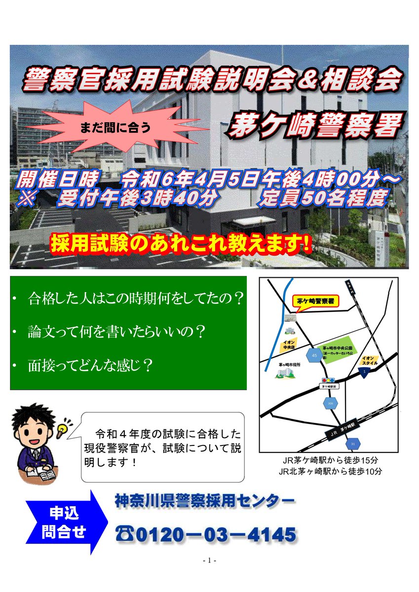 【採用イベント情報】☆茅ケ崎警察署インターンシップ☆4月5日午後4時~午後5時に神奈川県茅ケ崎警察署でインターンシップを実施するガル!面接の雰囲気や論文の書き方を聞けるチャンスガル!先着50名なので希..