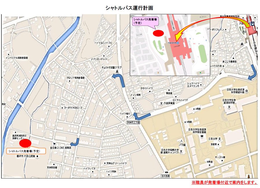 8月23日(土)開催!北消防署地域交流イベント無料シャトルバス(六会日大前駅西口発着)のご案内当日午前9時から運行します!会場の駐車場には限りがありますので、是非ご利用ください!※会場内で発生した事故..