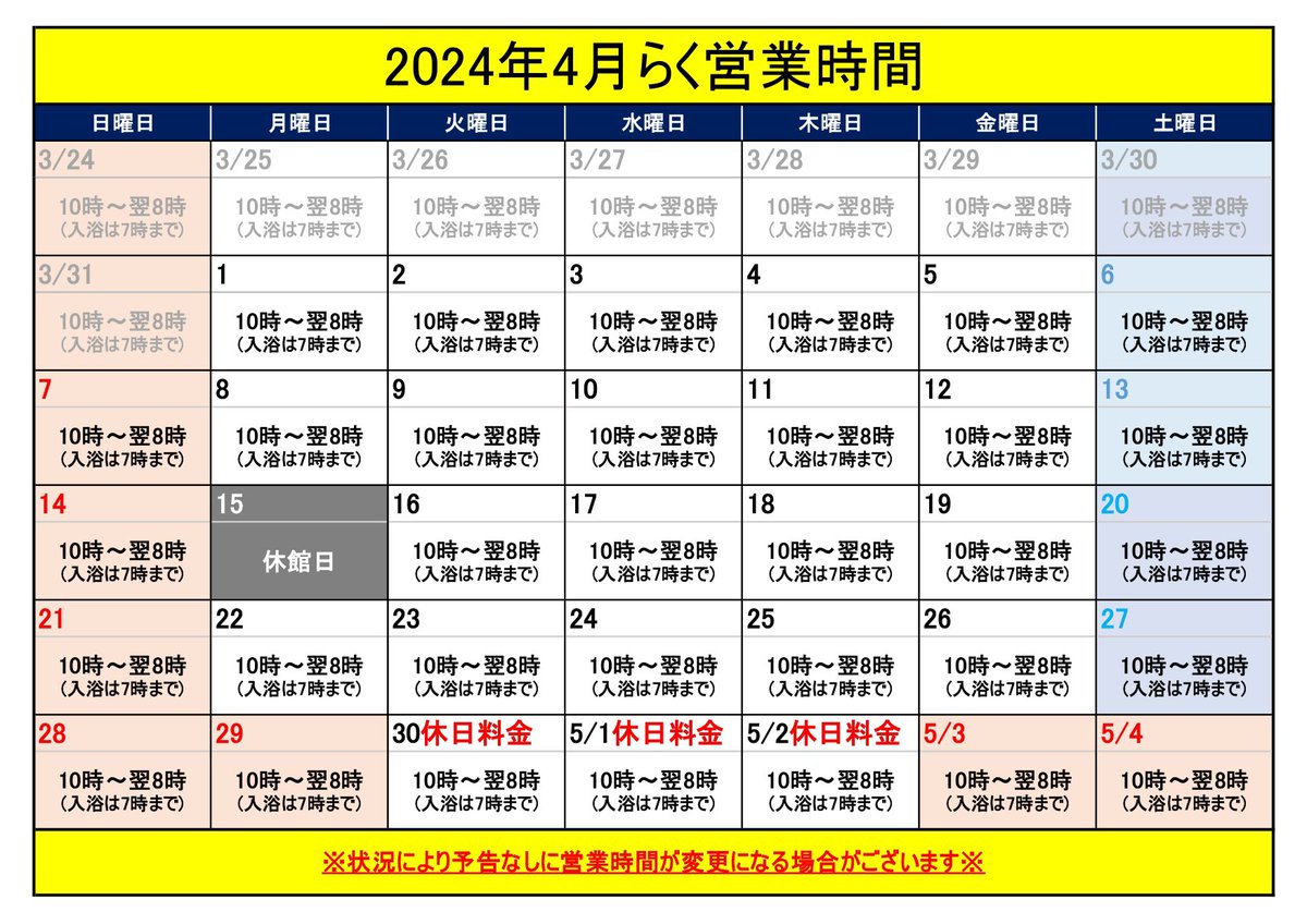 4月の営業スケジュールはこちらになります! ※状況により予告なく変更となる場合もございます。 ご了承ください。