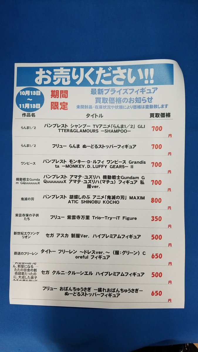 ブックオフ秦野渋沢店からのお知らせです。最新プライズフィギュアの買取価格のお知らせです#ブックオフ秦野渋沢店#フィギュア#プライズ