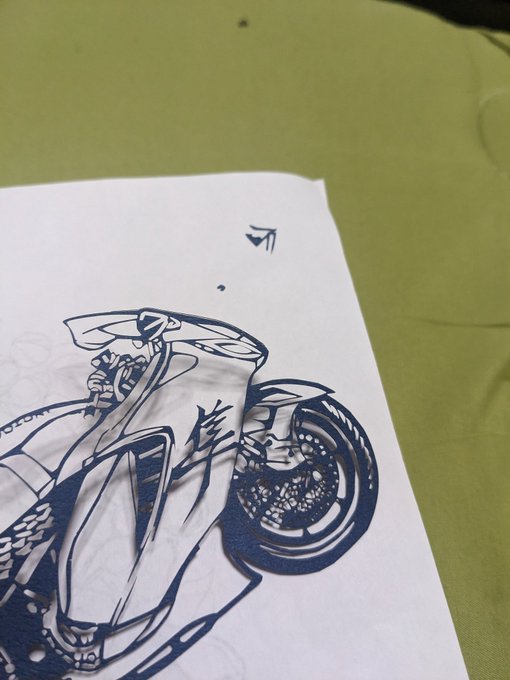 隼の切り絵御朱印、完成間近 なんか、小さなパーツが取れてしまったので、補強して、枠をつけて、朱印を押すところを作れば…ワクワクしますね〜♪ #バイク #切り絵御朱印 #隼乗りさん出遅れないように