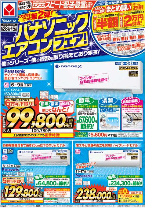 《混み合う前に!》3階#エアコンコーナーでは『#パナソニックエアコンフェア』実施中!ナノイーX搭載高機能エアコン「#エオリア」シリーズがコンパクトタイプからハイグレードタイプまで衝撃特価に!まとめ買い..