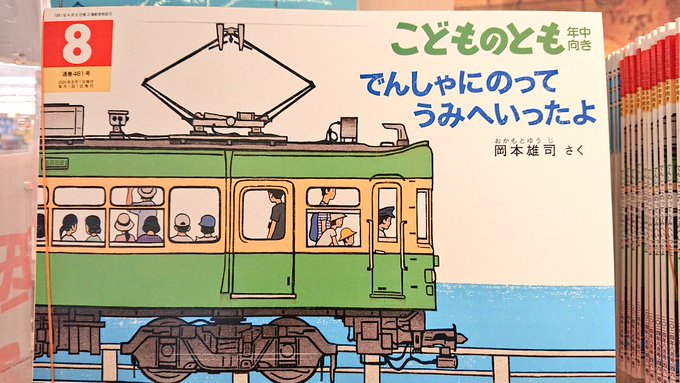 【新刊】本日発売の『こどものとも年中向き』は「でんしゃにのってうみへいったよ」です!作者は藤沢市在住の岡本雄司さん。表紙には海沿いを走る江ノ電が描かれています。