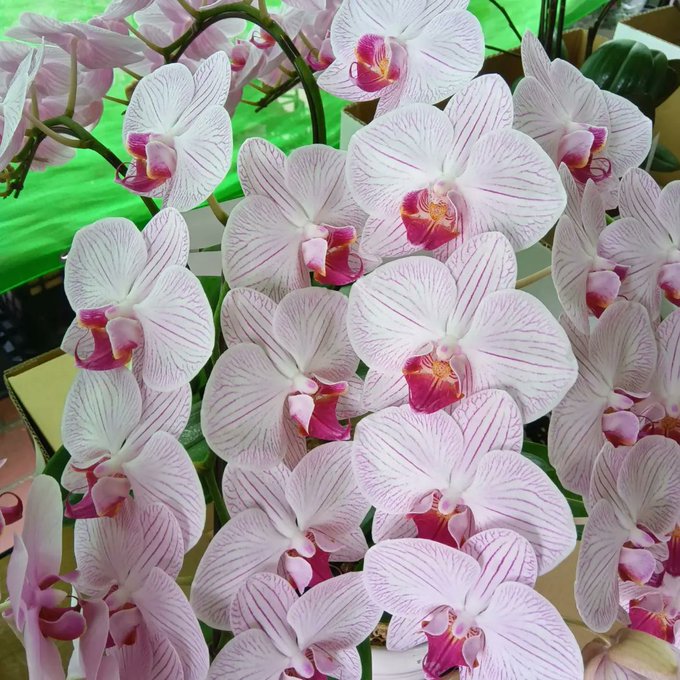 切花の入荷と一緒に胡蝶蘭、バプティシジュームが入っております。胡蝶蘭はおおよそ2,000円とお買い得ですので是非ご覧下さいませ#ワールドフラワー#大船#胡蝶蘭