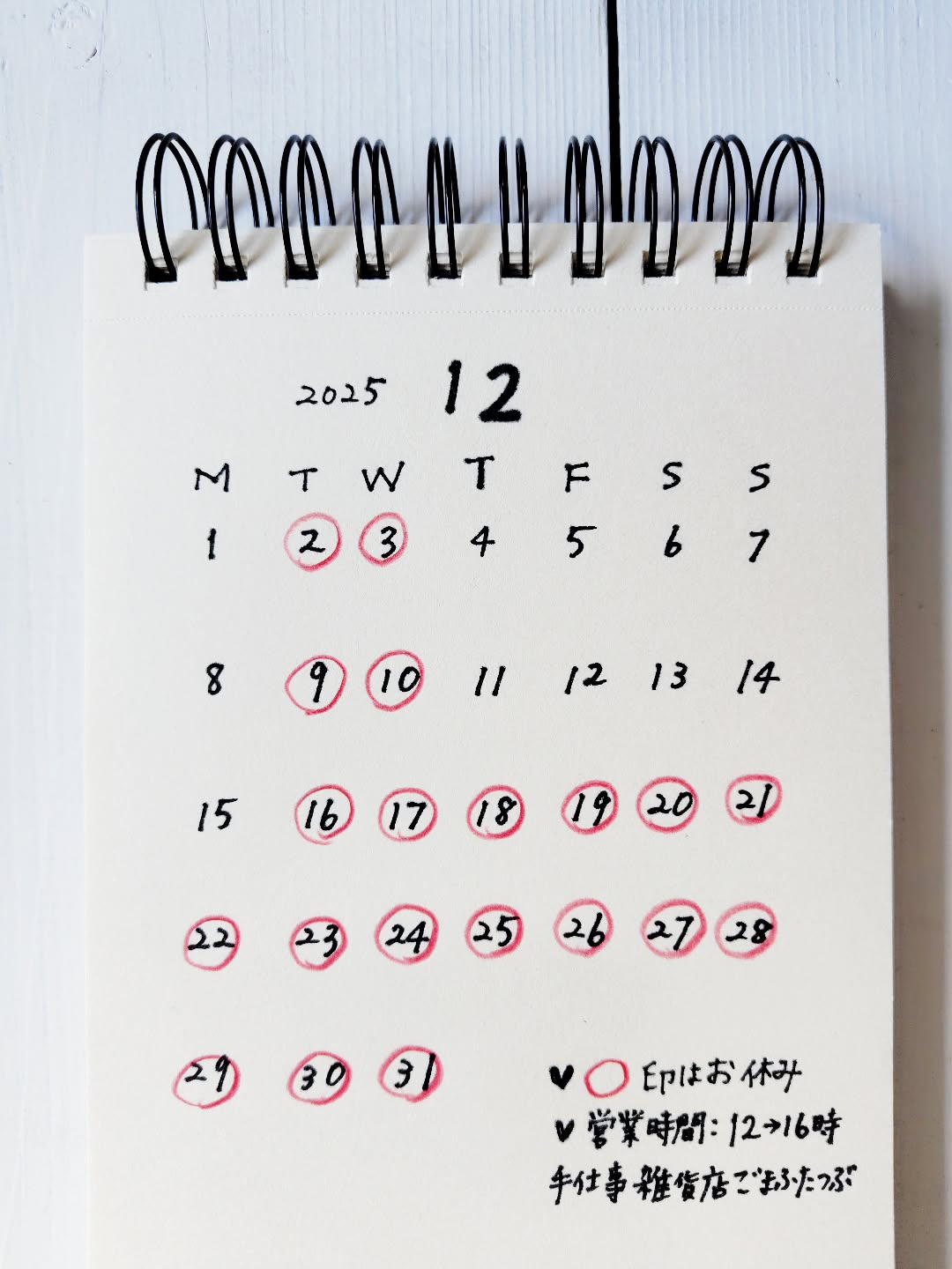 お待たせいたしました!12月の営業日程をお知らせいたします。クリスマス期間(12月20日〜)はイレギュラ..