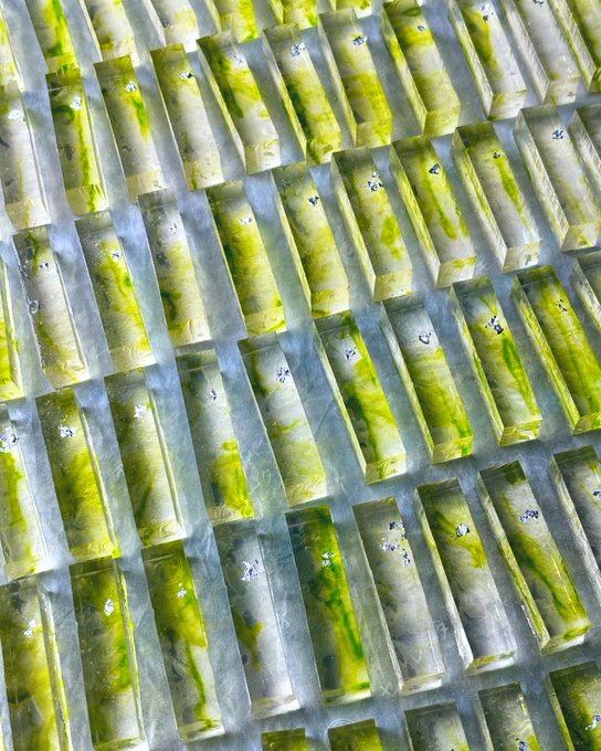 梨続きでこちらも。 9月の琥珀は「和梨の琥珀」。 試作段階ですが、良い感じに仕上がる予感。和梨の果汁とリキュールを使用した、爽やかな香りの琥珀です。 9月の頭くらいから店頭で販売できるかと思います。