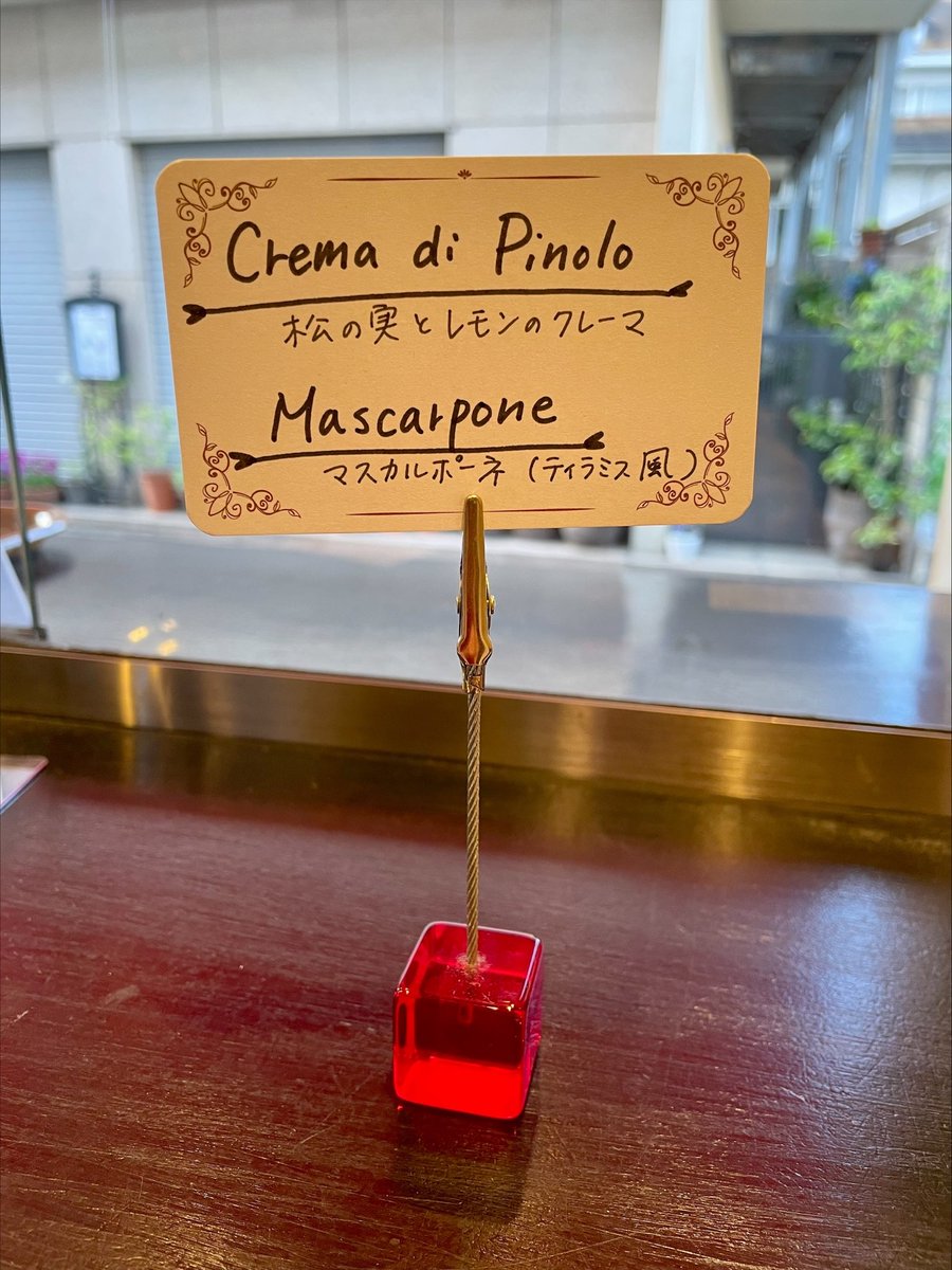 本日のメニュー:松の実とレモンのクレーマ、マルサラ、ココナッツ、ジャンドゥヨット、メキシコカカオのチョコ、ピエモンテ産ヘーゼルナッツ、アーモンドミルク、マテーラ産ピスタチオなどなど。明日は通常営業、7..