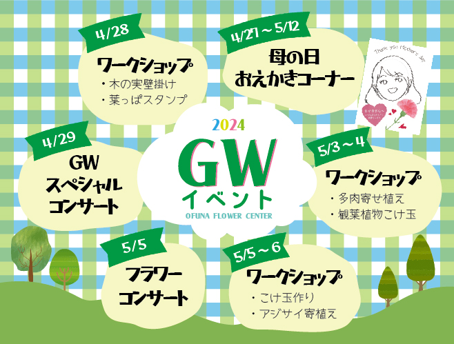 こんにちは、大船フラワーセンターです!もうすぐ連休が始まりますね(^^)連休中は楽しいイベントをご用意して、皆様のご来園をお待ちしております☆01085