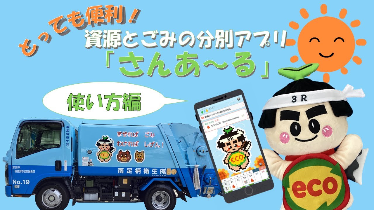 資源とごみのアプリ『さんあーる』は、収集日を知らせるアラーム機能や、分別方法を簡単に検索できる、とても便利なアプリです。お手持ちのスマホやタブレットにインストールしてね!