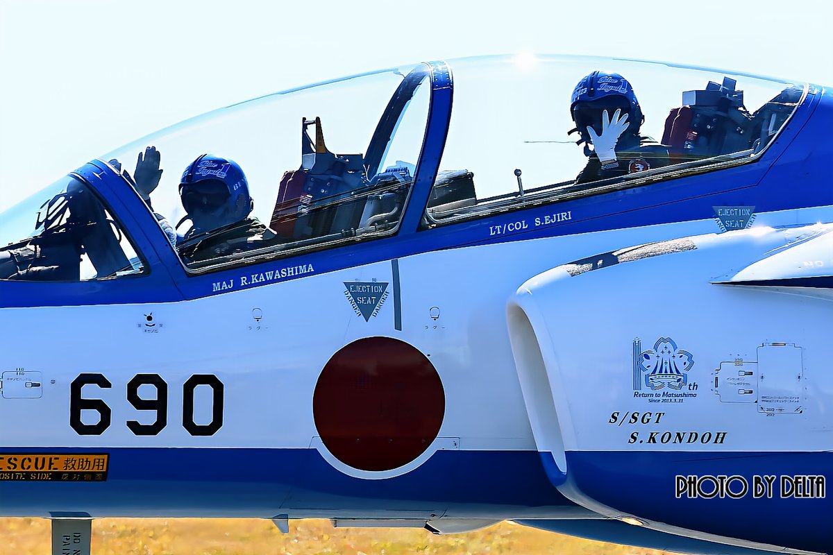 いつかの航空祭終了後の夜。格納庫で翼を休めるブルーインパルスとF-15。F-15の大きさが目立つしブルーは小さい機体、と目に映るかもしれません。でも、ブルーのT-4って実は観光バスより大きいんですよ。..