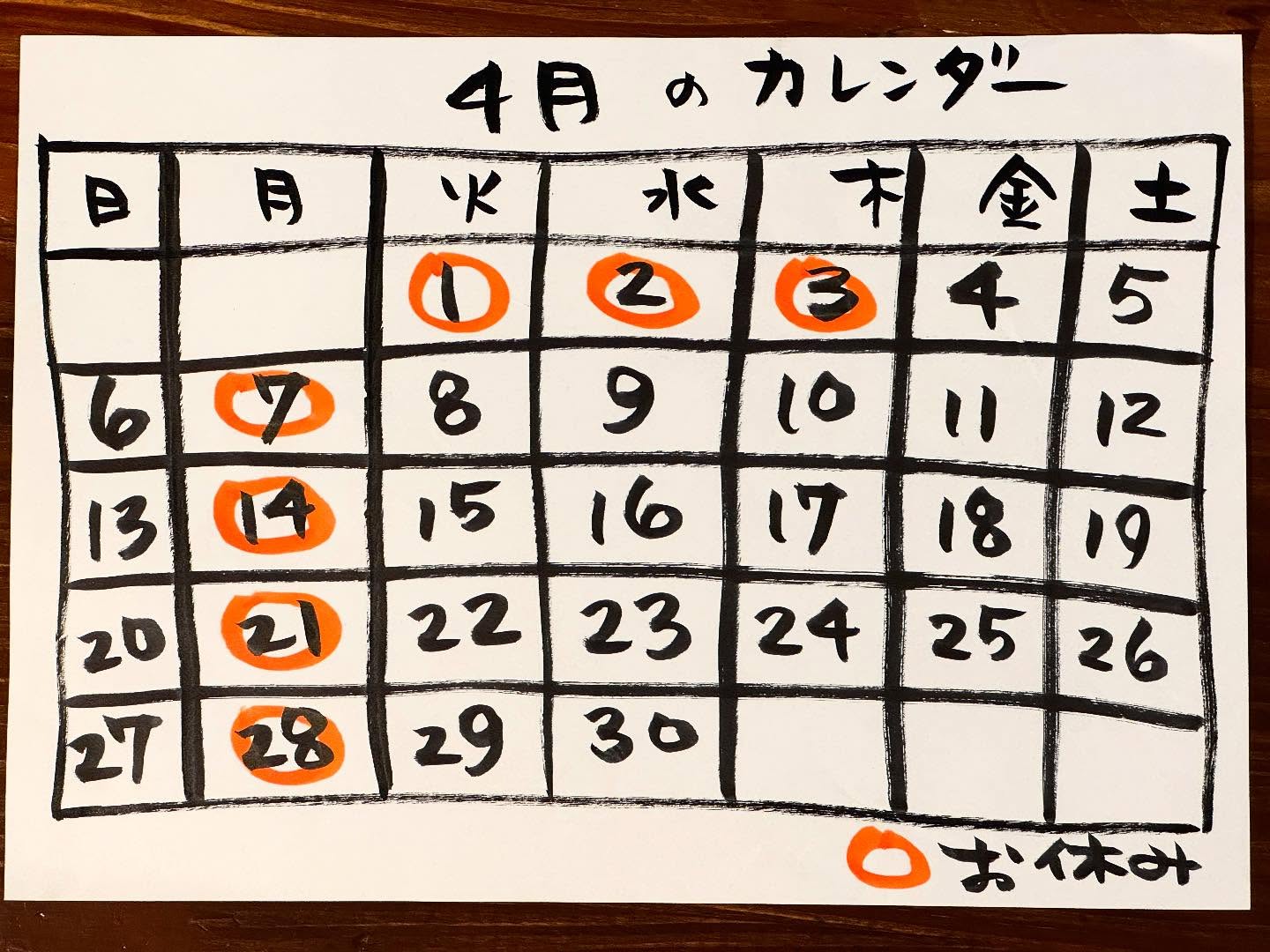 4月のお休みのお知らせです📢4/1(火)4/2(水)4/3(木)4/7(月)4/14(月)4/21(月)4/28(月)🌸4/1(火)〜3(木)春休みを頂きます。ご了承の程よろしくお願い致します❗️"*..