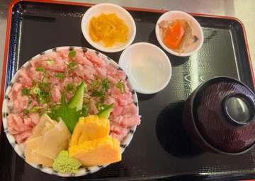 こんにちは小田原食堂です!本日のおすすめ海鮮丼です。人気があるのはマグロ丼、マグロ漬け丼、サモン丼、あぷりサモン丼、ネギトロ丼ですご飯は白米か酢飯か選べます(味噌汁+香物2種)または刺身定食もハーフ丼..