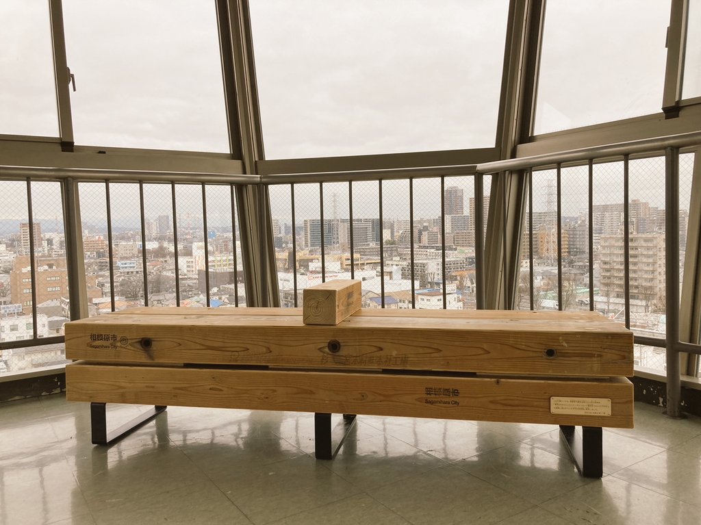 この度、市役所の展望室に木製ベンチを設置しました。 使用したのは、東京2020オリンピック・パラリンピックの選手村で使用された津久井産材。 長旅から戻った木材に想いを馳せて、ノスタルジックなひと時を過ごしてみてはいかがでしょうか。