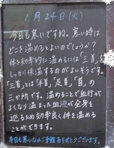 【#今日のウェルカムボード】今週は#最強寒波到来のようです😨❄️#三首を温めて、寒さを乗り越えましょう!本日もご来館をお待ちしております🍀#相模大野図書館000