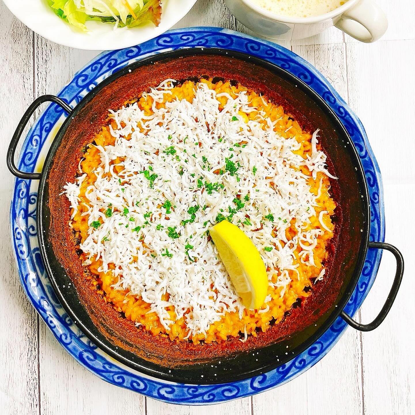 🥘【今週のシェフの気まぐれパエリア】\シラスと帆立のパエリア/シラスの磯の香りと帆立の旨みがぎゅっ..