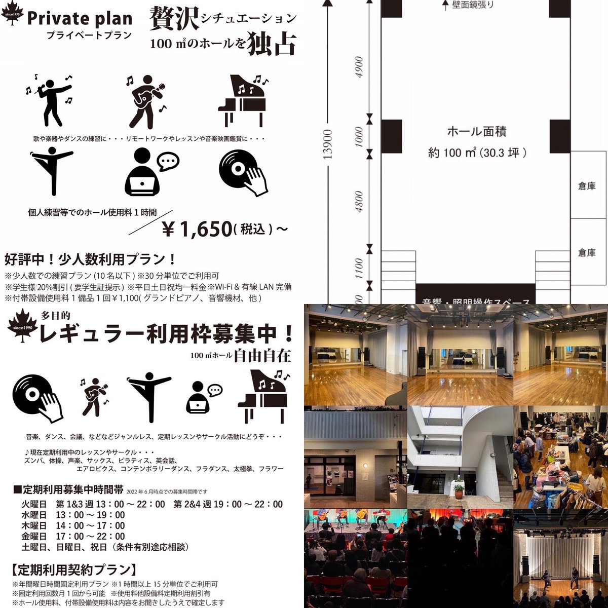 定期利用、単発利用、練習プラン、通常プランなどなど、ご利用のお客さまのジャンルや規模をふまえ、様々なパターンで対応しております。お気軽にご相談くださいませ🕺🏻maplehall1990.storein..