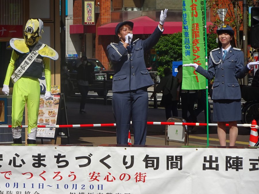 \「安全・安心まちづくり旬間」出陣式開催!/10月10日、歌手の#彩ショルさんと、モーターサイクルジャーナリスト#水野ちはるさんの2名を「旬間防犯大使」に委嘱し、防犯ソングの披露、通行人への呼び掛けや..