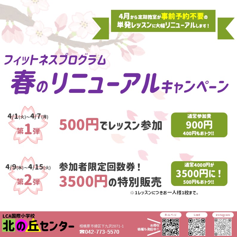 🎉🎉フィットネスプログラム新規・リニューアルキャンペーン🎉🎉4月1日(火)~4月15日(火)にキャンペーンを開催いたします❣めったにないこの機会にぜひご参加ください😁😁😁**・**・**・**・**・.. 続きを読む