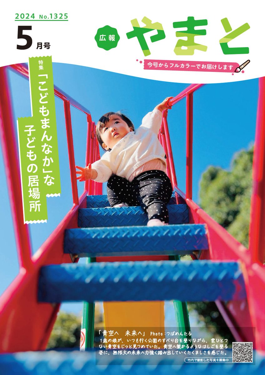 広報やまと5月号を発行しました。 ≪特集≫ ◆「こどもまんなか」な子どもの居場所 ≪市からのお知らせ≫ ◆夏休み期間中の放課後児童クラブの入会申請を受け付け ◆市営住宅の入居者を募集 ◆大和市中小企業融資制度 ◆市職員を募集