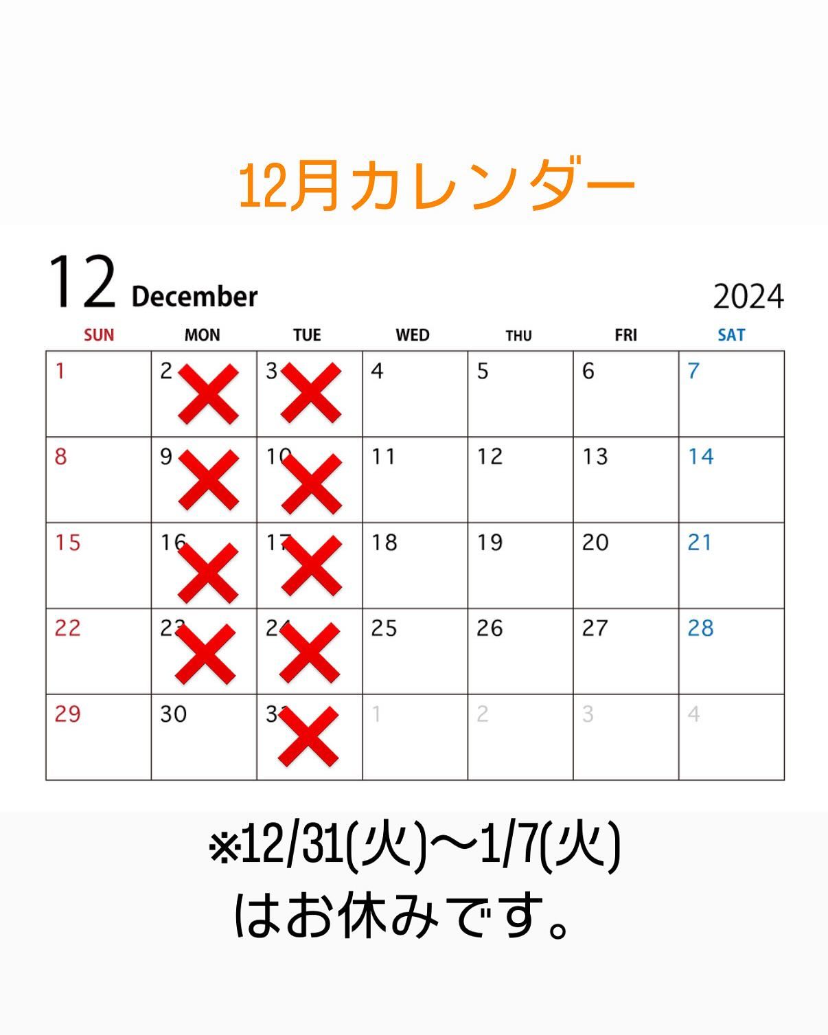 こんばんは🌴12月と年末年始の営業日のお知らせです🎄☆1日(日)貸し切り予約の為、17時より営業いたします..