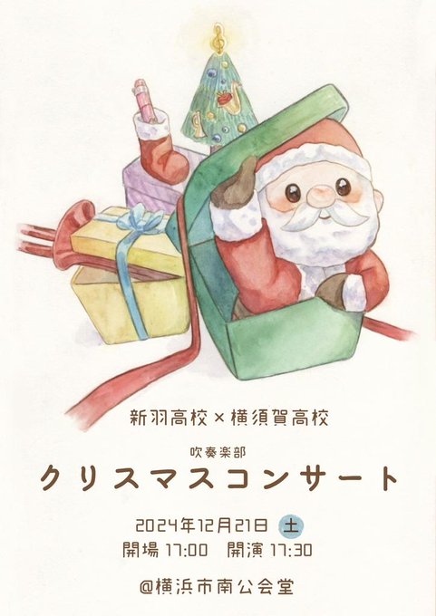 12/21(土)17:30〜横浜市南公会堂にてクリスマスコンサートを行います部員一同精一杯演奏致しますので、ぜひご来場ください!!