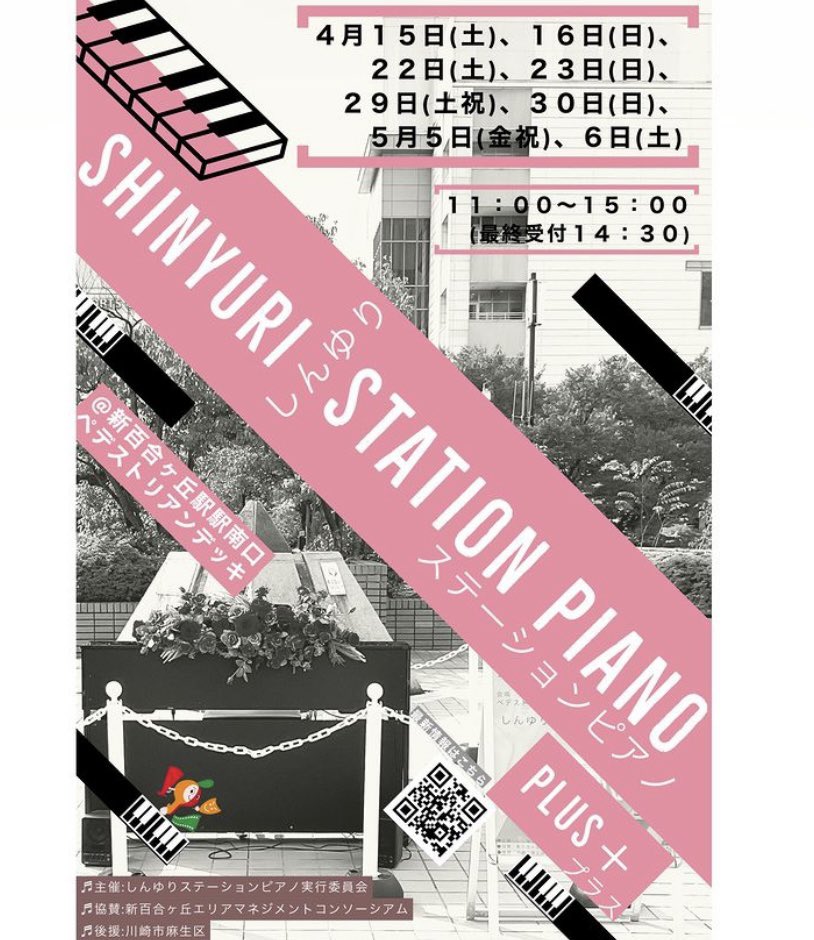おはようございます☀︎本日のしんゆりステーションピアノも予定通り開催します♪◎開催時間 11:00~15:00(受付終了時間14:30)◎開催場所 新百合ヶ丘駅南口ペデストリアンデッキ本日は風が強い予..