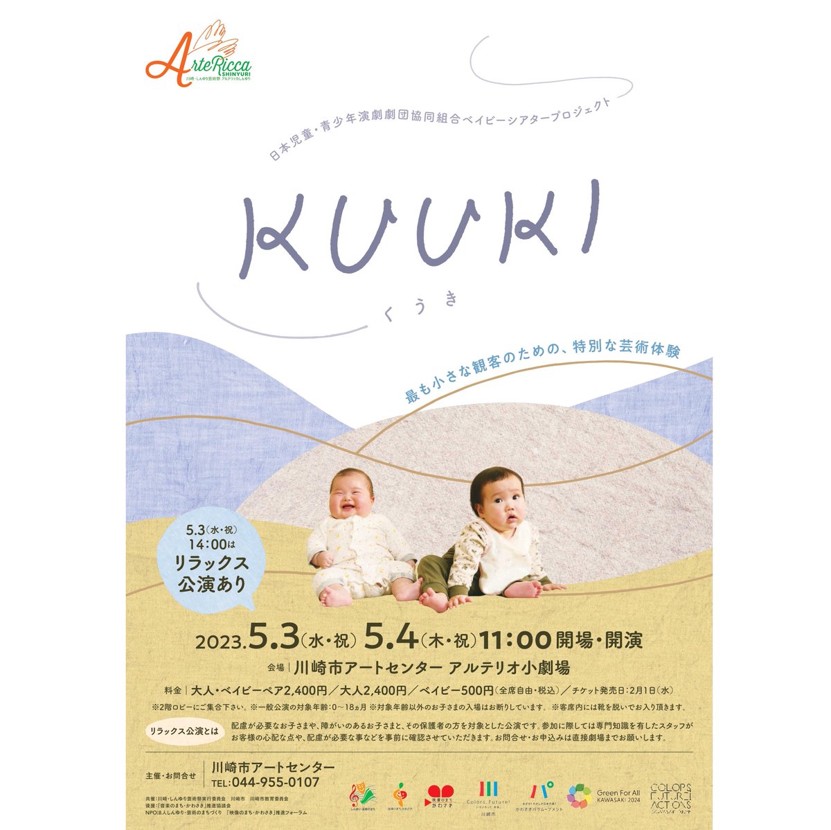 【ベイビーシアタープロジェクトKUUKI】👶開催日時:5月3日(水祝)11:00(一般)/14:00(リラックス)5月4日(木祝)11:00(一般)👶開催場所:川崎市アートセンターアルテリオ小劇場👶料..