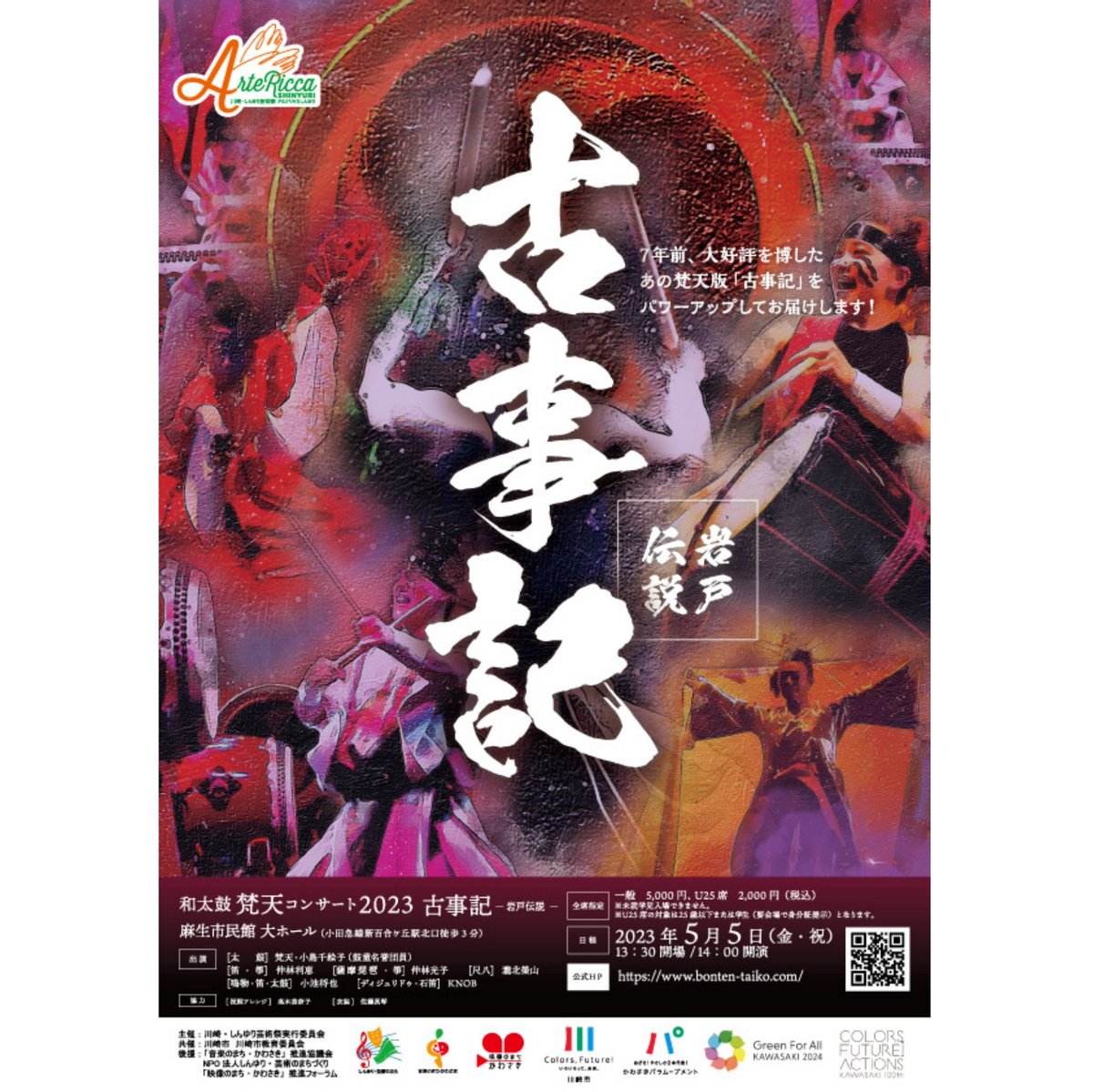 【和太鼓梵天「古事記」~岩戸伝説~】🥁開催日時:5月5日(金祝)14:00開演(13:30開場)🥁開催場所:麻生市民館 大ホール🥁料金:全席指定一般:5,000円U25席:2,000円今回楽曲を新たに..