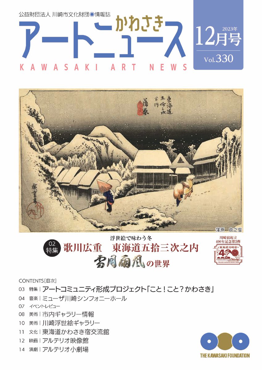 【WEB版公開】かわさきアートニュース12月号WEB版を公開しました📖市内の文化情報などを掲載した当財団発行の情報誌。12月号は「浮世絵で味わう冬『歌川広重東海道五拾三次之内雪月雨風の世界』」を特集し..