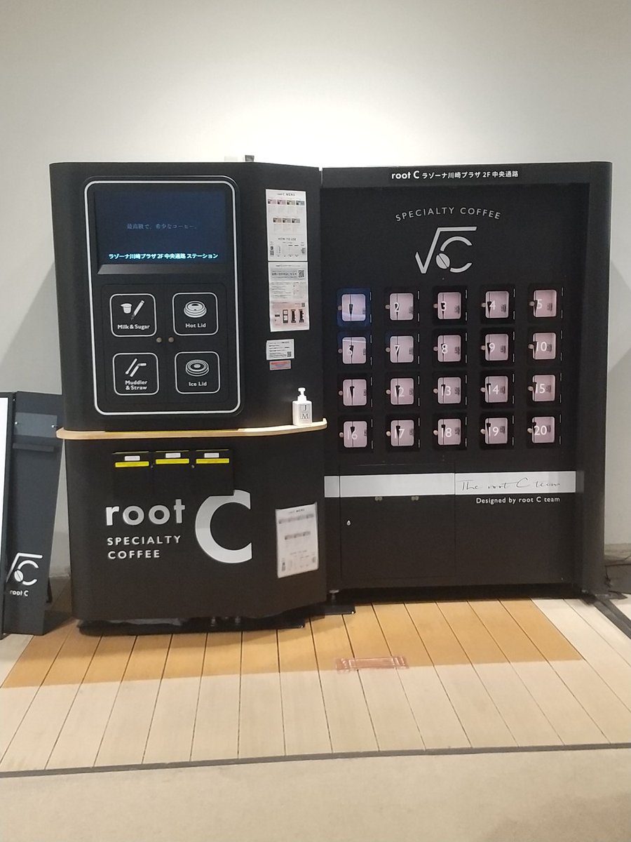 #川崎おもしろ自販機 27#ラゾーナはおもしろ自販機の宝庫①日経トレンディで紹介された#次世代自販機スマートコーヒースタンドはアプリで抽出する時間を設定できるほか、ライフスタイルに合わせたコーヒーを提..