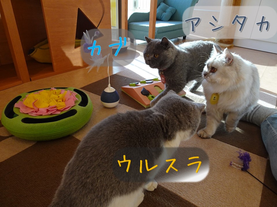 【ぺぴにゃん】カブ、ウルスラ、アシタカは、ボランティアさんとの遊びに夢中でした!シータは良い場所を見つけたようです!猫の譲渡希望の方はこちらから↓www.city.kawasaki.jp/350/pa..