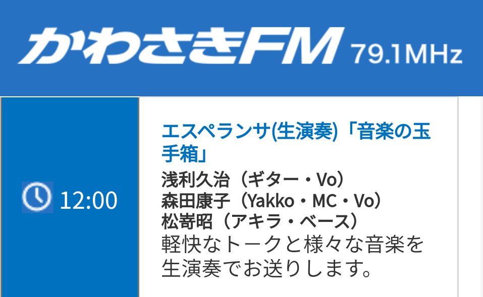 12:00 から✨🎁✨ エスペランサ「音楽の玉手箱」 今日は 🎸さゆりさんも来てくれましたよ☺️ #浅利久治 #森田康子 #Yakko #亜藤さゆり #かわさきFM #川崎市