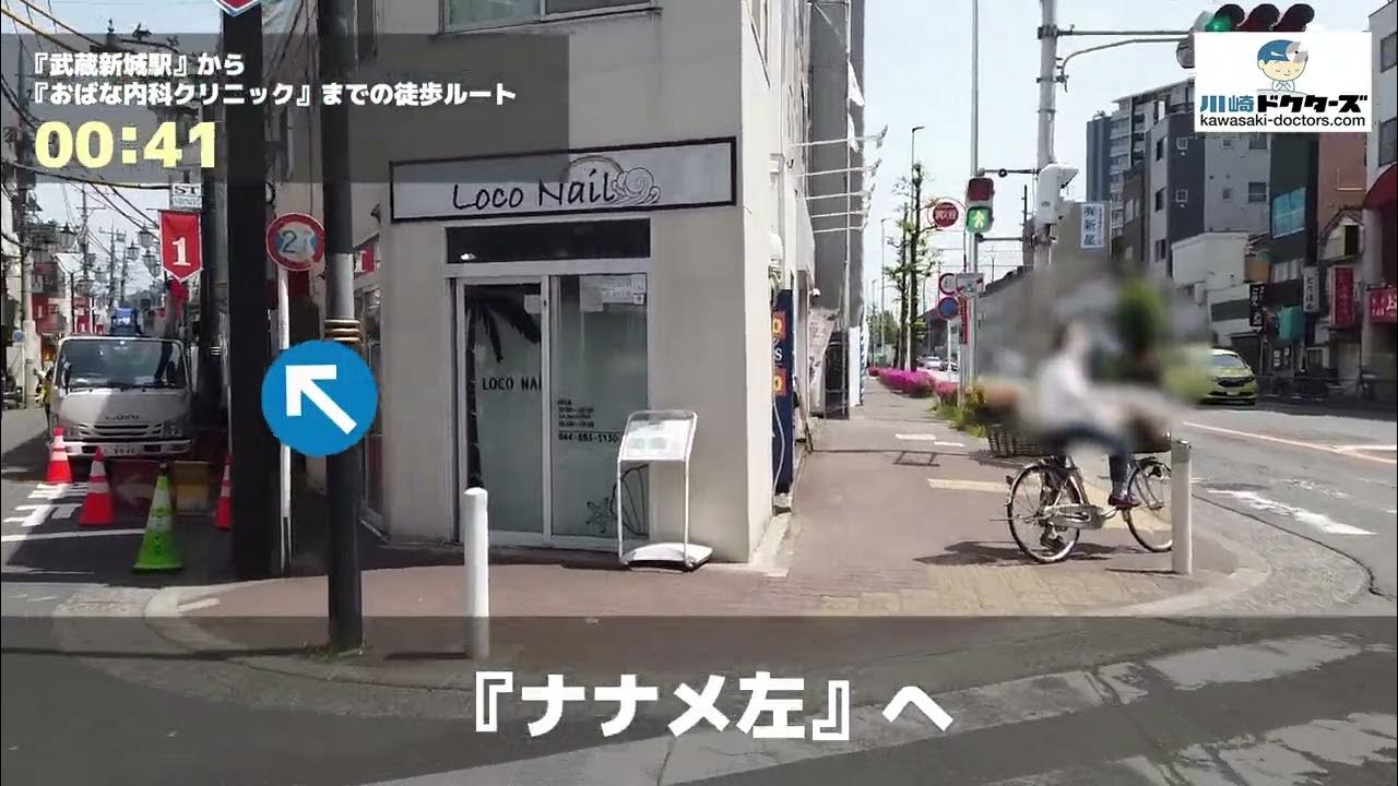 おばな内科クリニックの徒歩ルート(武蔵新城駅・内科)