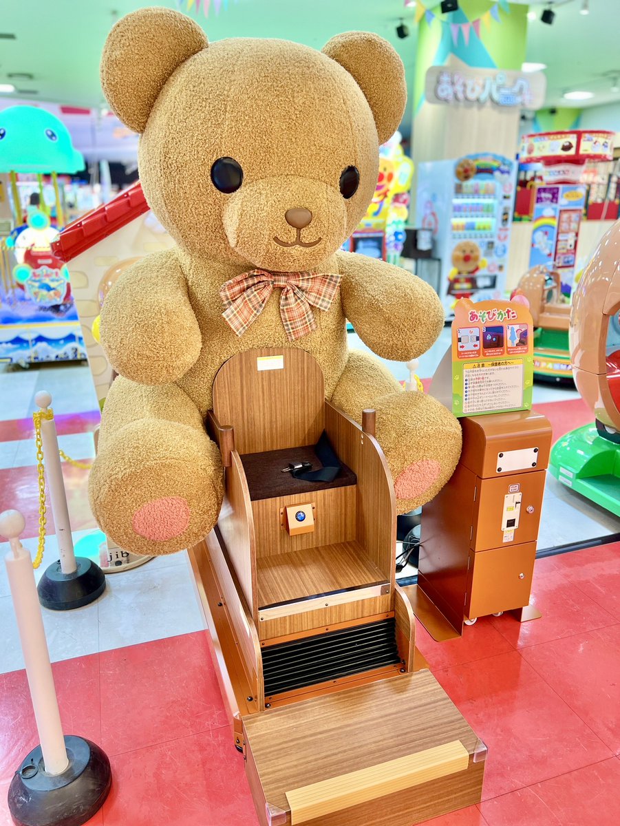 【乗り物情報】キッズ向け新作アーケード「ゆらふわびっくま」1プレイ:200円リズムに合わせて大きなクマさんと一緒にユラユラ動くよ!ふわっふわの手触りが抱きしめたくなる!小さなお子様でも乗れるので安心設..